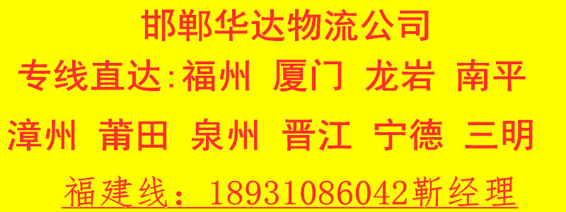 邯鄲到寧德物流歡迎您的來(lái)電(0310-5510646//18931086042靳經(jīng)理)邯鄲到寧德物流專線,邯鄲到寧德物流公司的詳細(xì)介紹頁(yè)面。