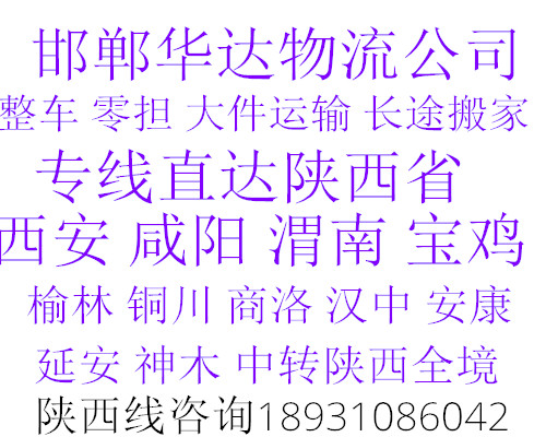 ★ 本站所l列邯鄲到渭南貨運專線費用與時效僅供參考,如需詳細了解最低資費請電話咨詢。