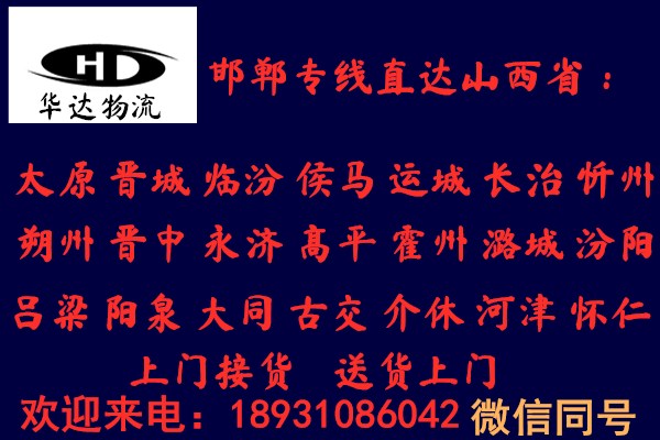 邯鄲到晉城物流公司運(yùn)費(fèi)查詢:18931086042華達(dá)物流以一流的服務(wù)體系,本著安全,準(zhǔn)時(shí),互友,互惠的原則贏得市場(chǎng),只要一個(gè)電話,一切由我公司操辦, 望廣大新老客戶給予大力支持、與我公司聯(lián)絡(luò),我們將竭誠為您提供一切方便,歡迎來人來電咨詢!